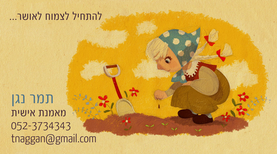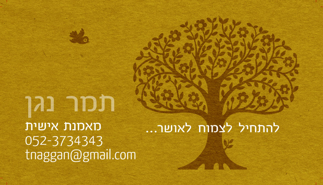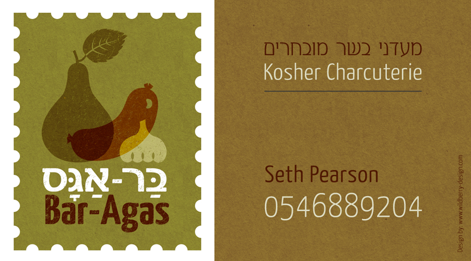 Wildberry has produced branding materials for a number of businesses. These materials include logos, packaging designs, and signature cards. The materials shown here were made for Bar-Agas, a kosher charcuterie; Tamar Naggan, a life coach; and Tal Prachim, a flower shop.